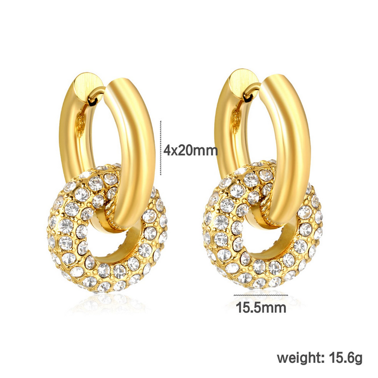 Crafted from premium stainless steel with 18K gold plating, they offer excellent durability while remaining lightweight for all-day comfort. The 15.5mm donut centerpiece creates the perfect balance of glamour and sophistication, making these earrings ideal for parties, weddings, dinners, and festive occasions.