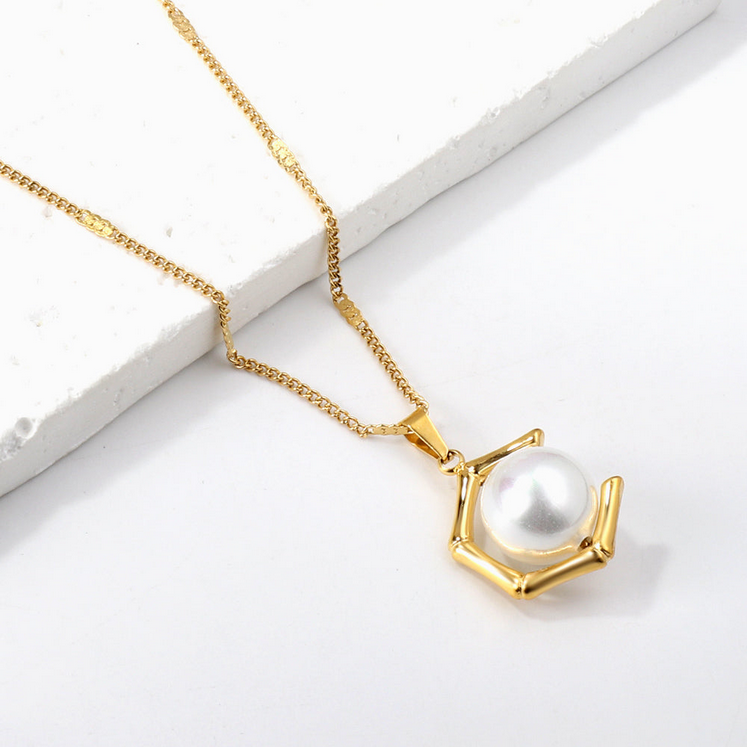 The White Pearl Pendant Necklace by Fynzi is designed for women who love classic beauty with a modern touch. Featuring a refined pentagonal frame paired with a luminous white pearl, this necklace delivers understated sophistication that never goes out of style.